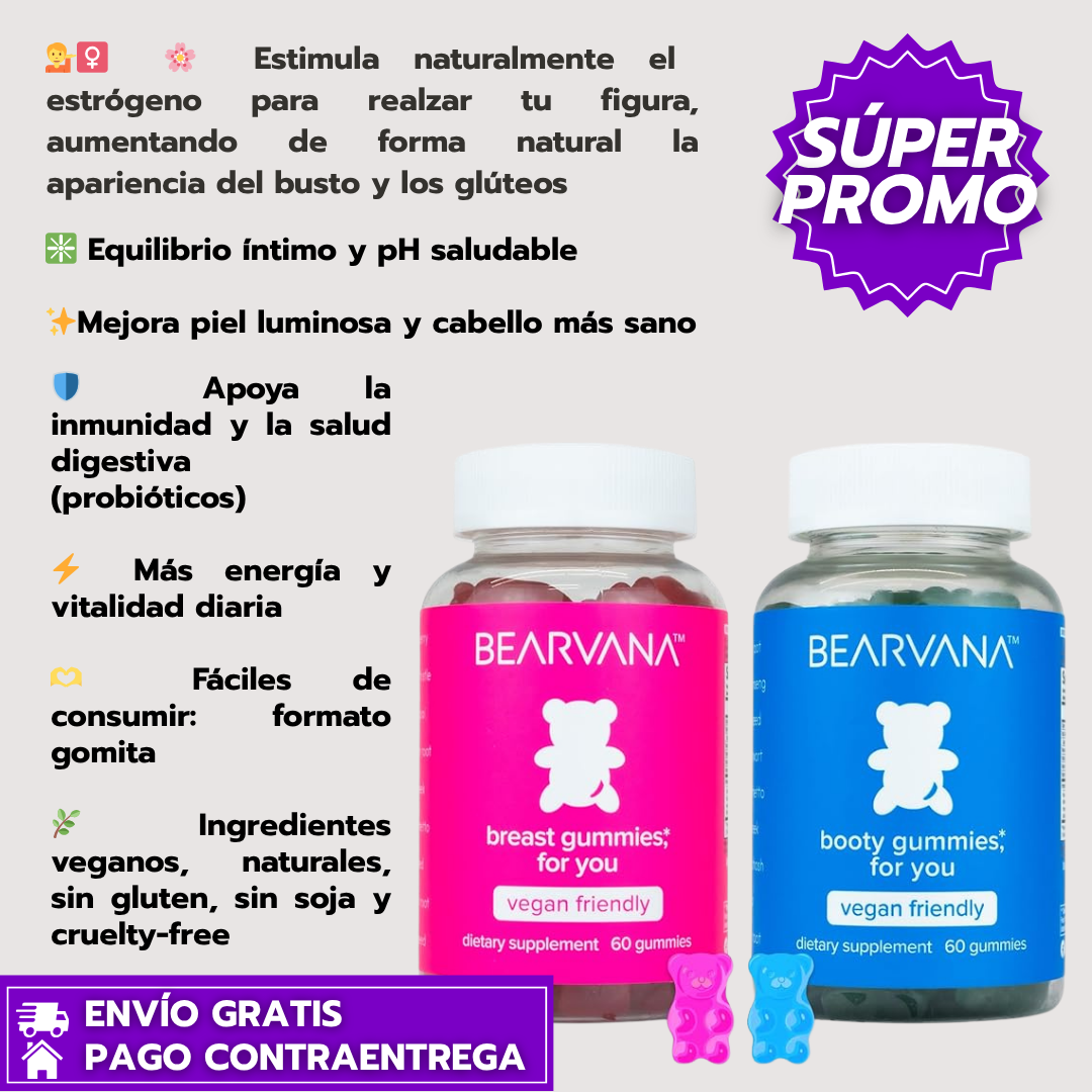 Oferta Especial 2x1: Bearvana Duo™: Gomitas veganas para aumentar senos y glúteos de forma natural.