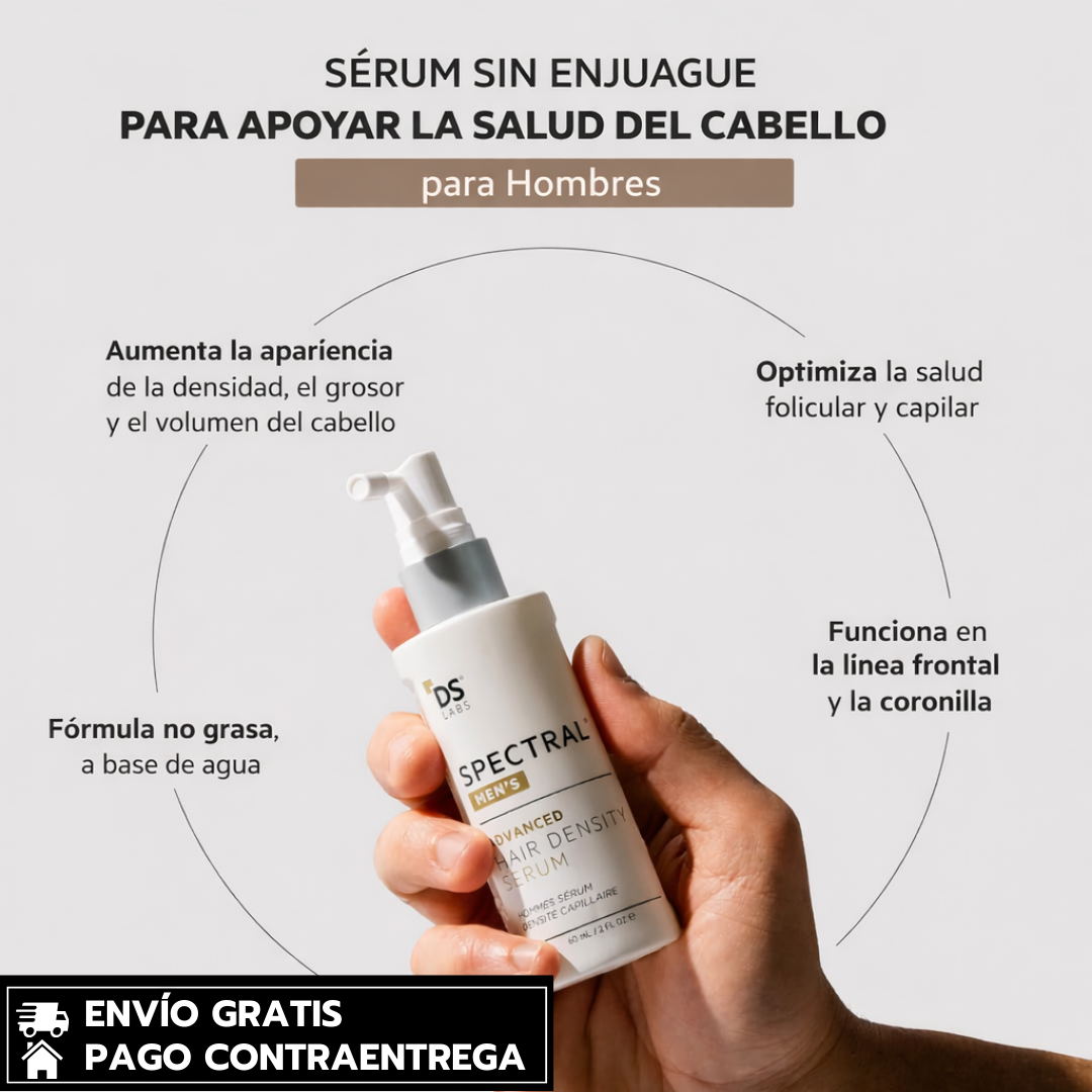 DS Laboratories Spectrals Men’s Hair Density Serum está diseñado para hombres que entienden algo clave: si no atacas la caída ahora, el problema solo empeora. Su fórmula avanzada actúa directamente sobre el cuero cabelludo para frenar la caída, fortalecer el folículo y recuperar densidad visible.